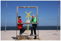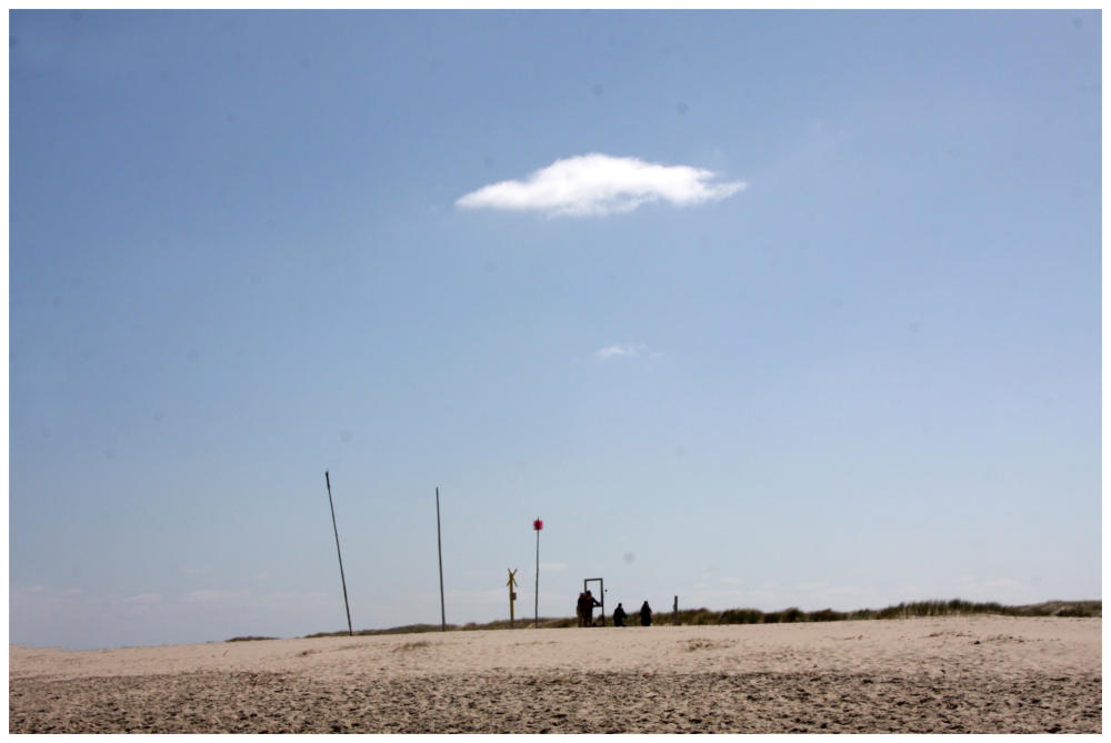 Schild an den Dünen aus noch ein paar Meter durch den feinkörnigen Sand.